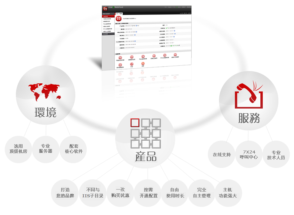 我们支持windows 2003 / windows 2008 / CentOS等不同的操作系统,专业软件则自行开发,我们有强大的技术开发实力,在同行业一直处于领先地位。