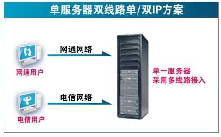 2. 单IP的双线:单IP双线服务是在机房路由器级根据用户线路,切换相应的电信/网通线路。 但由于大部分双线路机房是从电信、网通获得IP地址。没有权限切换线路。导致根本无法达到全网快速的目的。 而一部分有IP自治域的机房,却无法获得从电信/网通获得足够的带宽。 导致用户访问速度并不理想。